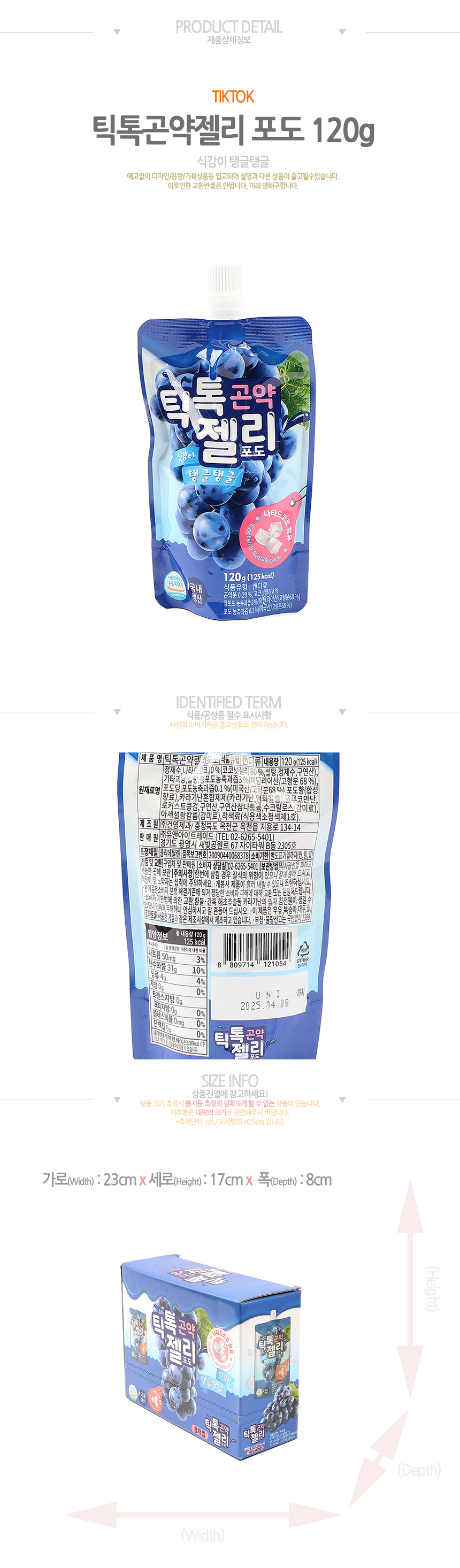 틱톡곤약젤리포도 (120g*8입)