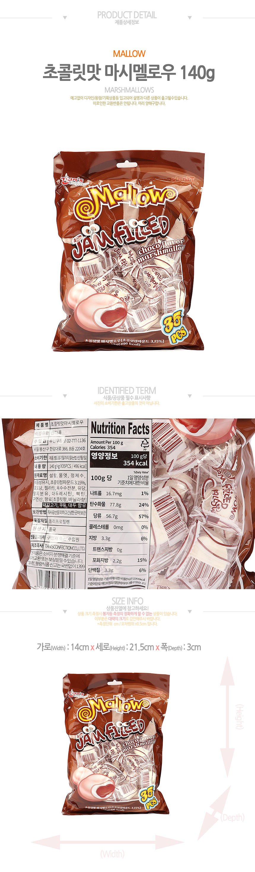 멜로우 초콜릿맛 마시멜로우(140g*24입)