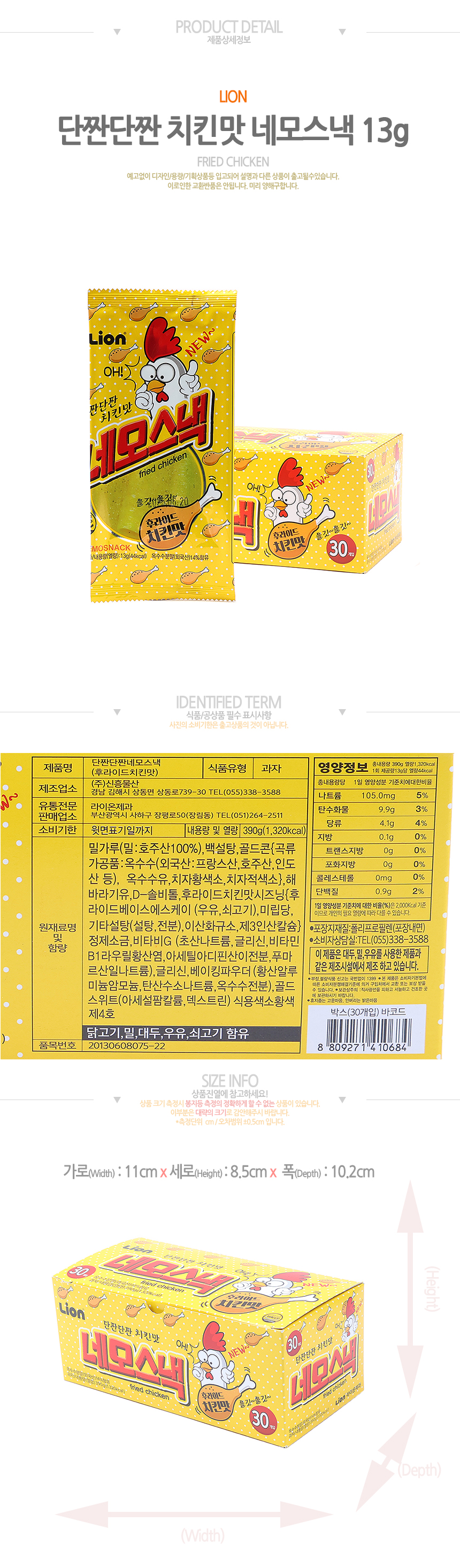 단짠단짠 네모스낵 후라이드치킨맛(13g*30입)