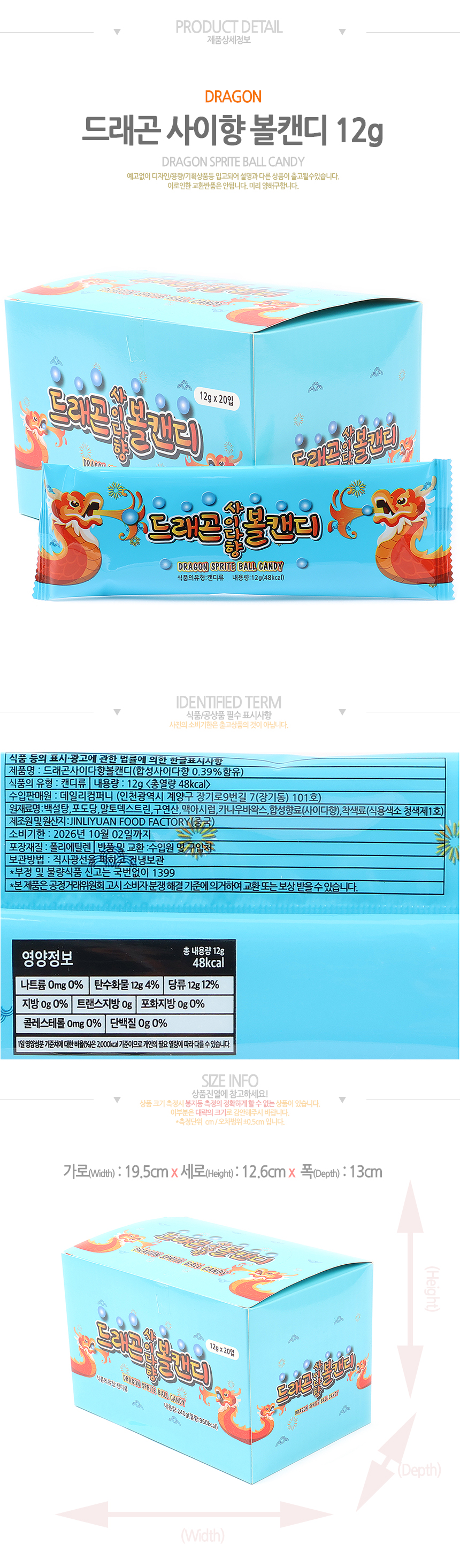 드래곤 (사이다향) 볼캔디(12g*20입)