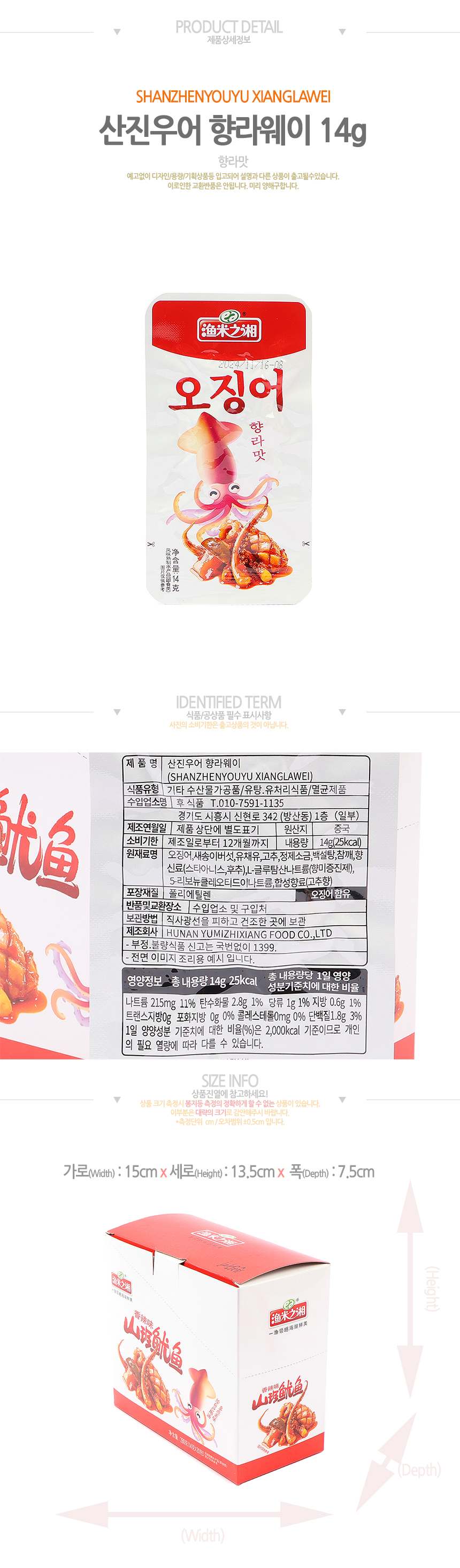 산진우어 향라웨이 (향라맛오징어) (14g*20입)