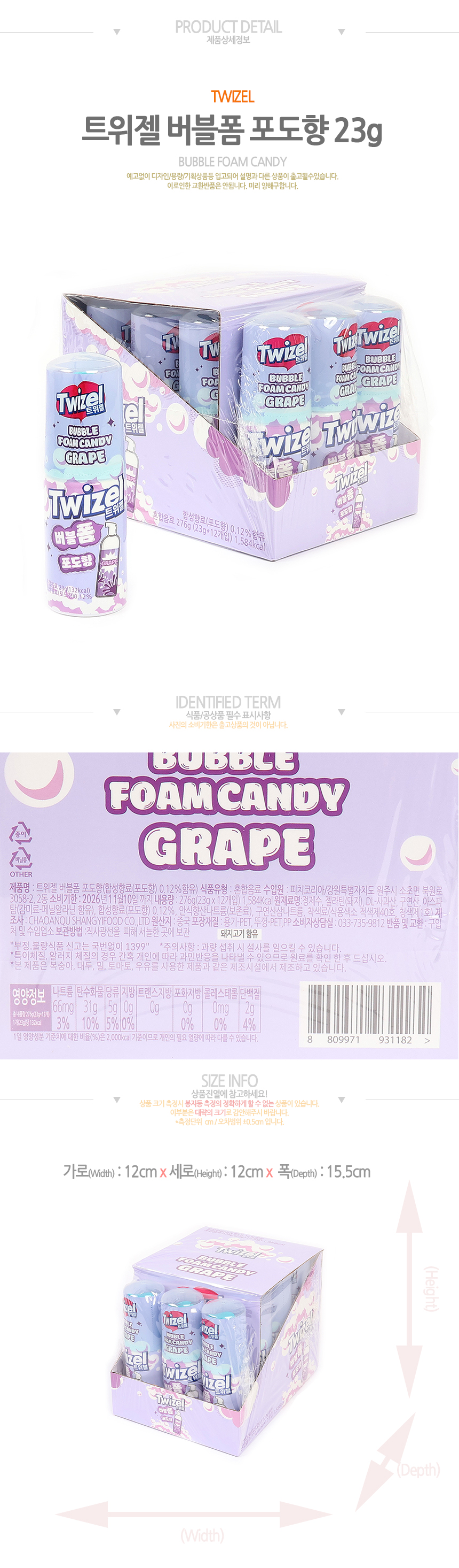 특가)트위젤 버블폼 포도향(23g*12입)