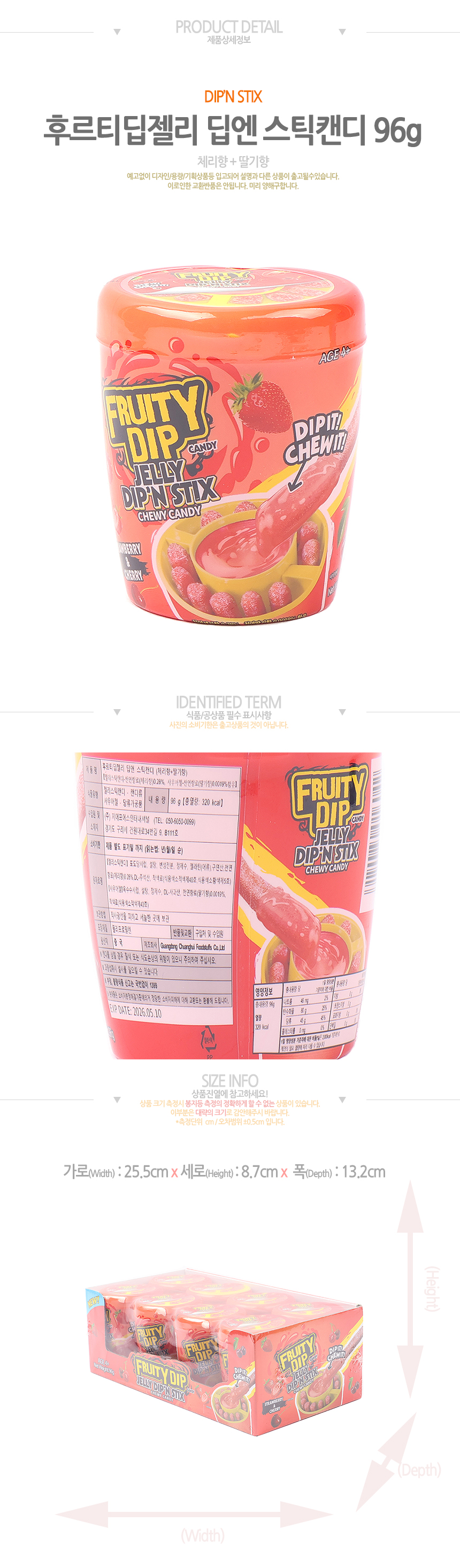 후르티딥젤리 딥앤 스틱캔디(체리+딸기향)(96g*8입)