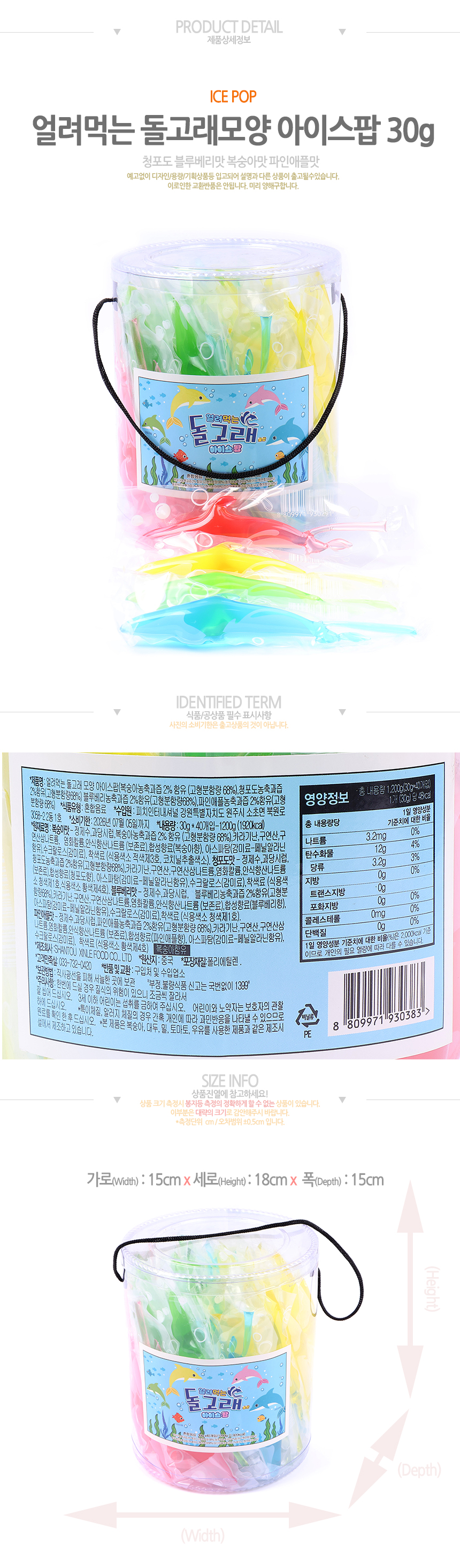 얼려먹는 돌고래모양 아이스팝 (30g*40입)(통)