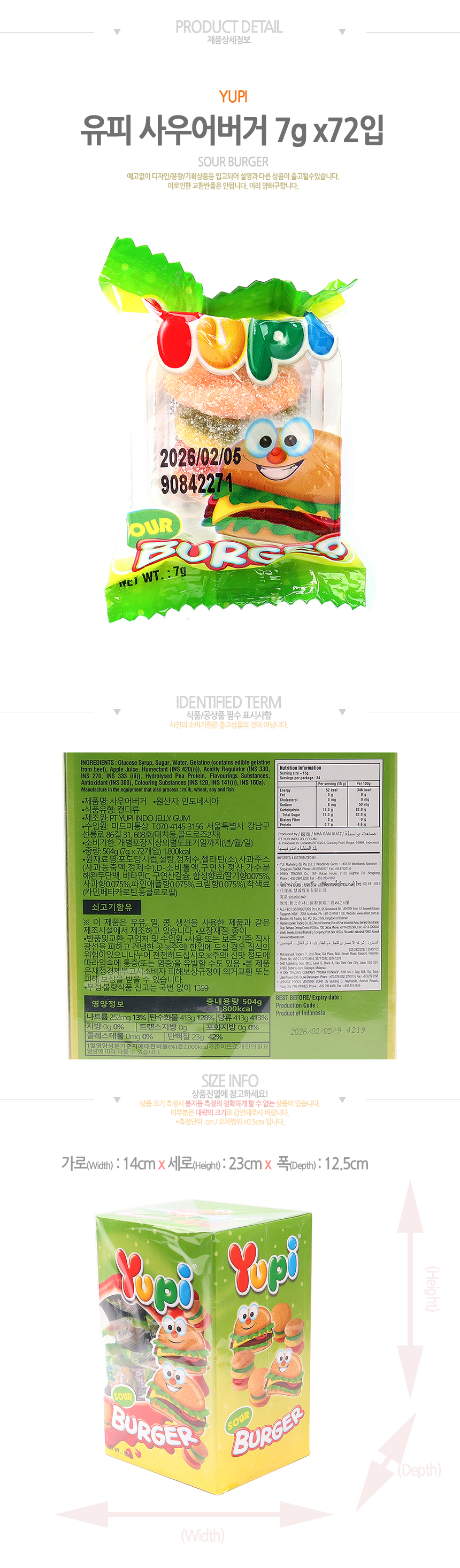 유피 사우어버거 504g(7g*72입)