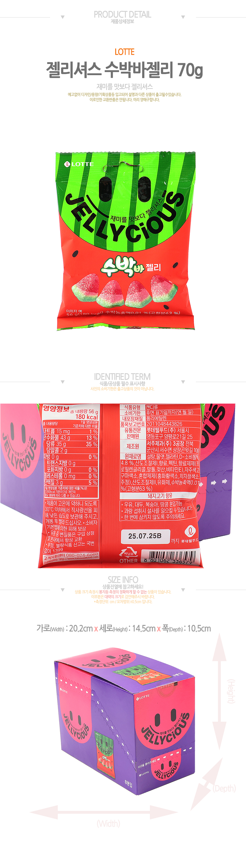 롯데 젤리셔스 수박바 젤리(56g*8입)