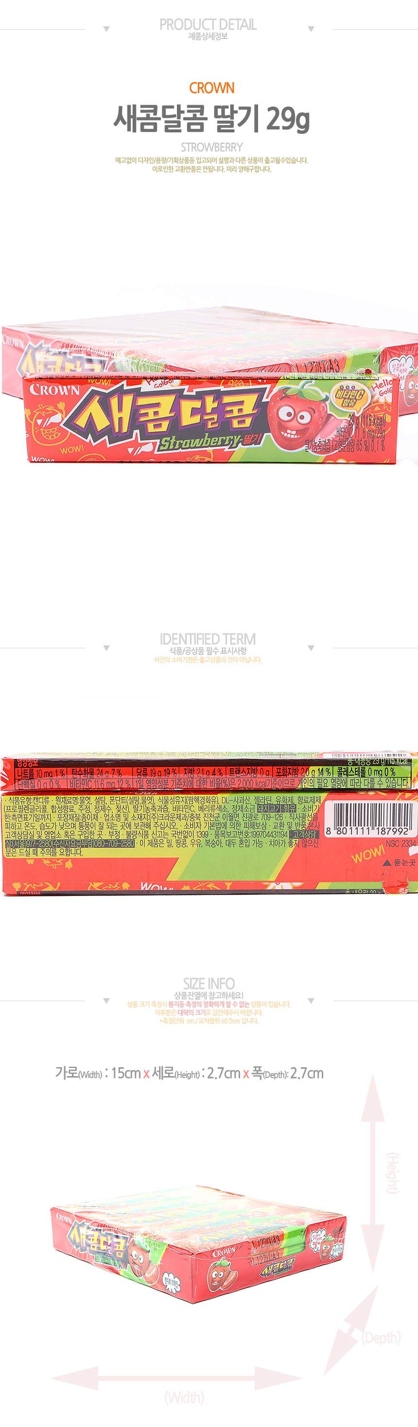 크라운 새콤달콤 딸기맛(29g*15입)