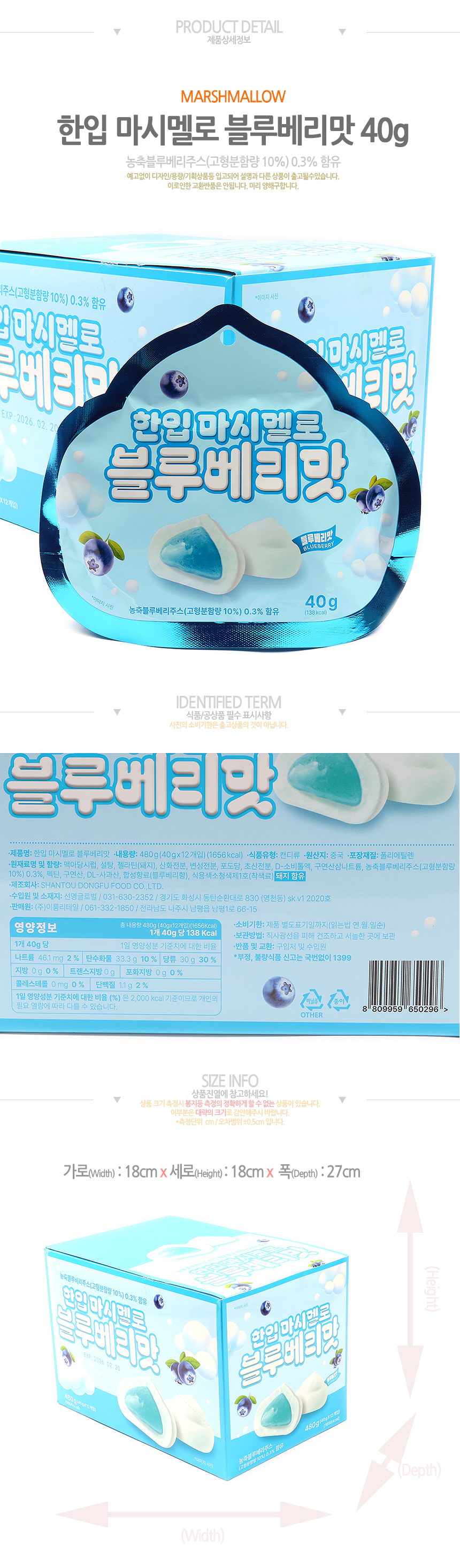 한입 마시멜로 블루베리맛(40g*12입)