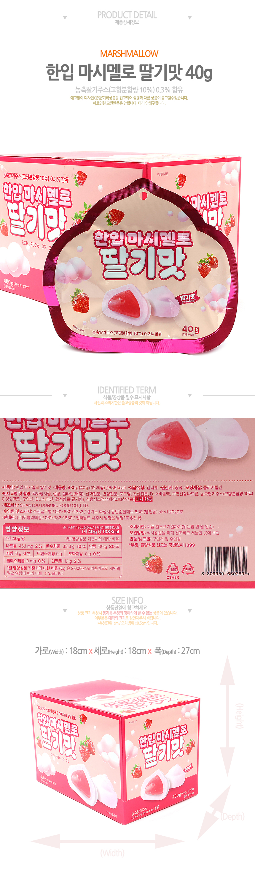 행사]한입 마시멜로 딸기맛(40g*12입)