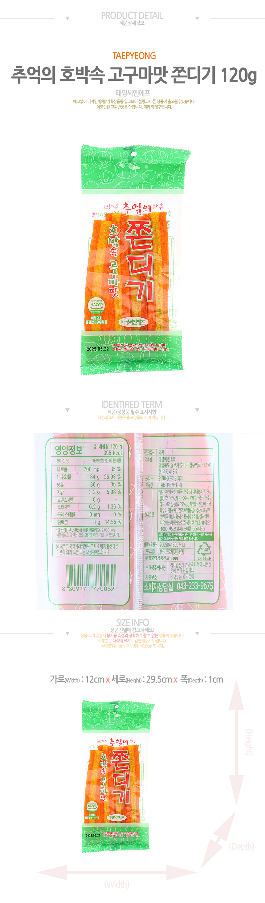 추억의 호박속 고구마맛 쫀디기 [무지개] (120g*30입)