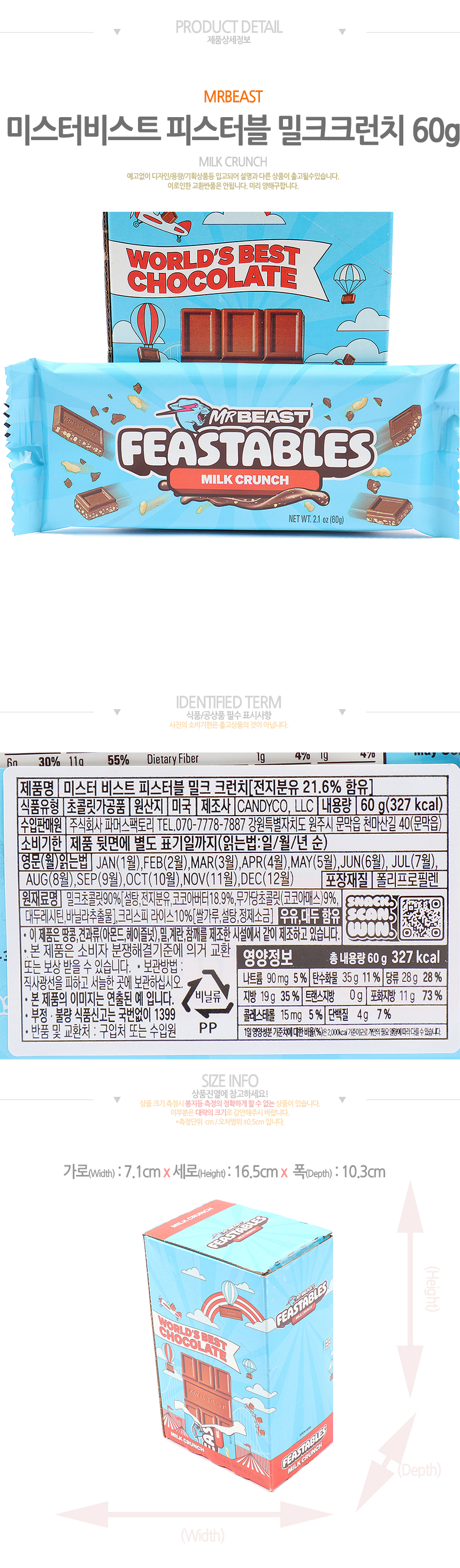 특가)미스터비스트 피스터블 밀크크런치(60g*10입)
