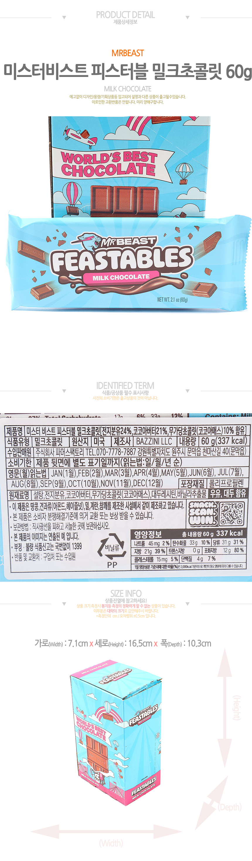 특가)미스터비스트 피스터블 밀크초콜릿(60g*10입)