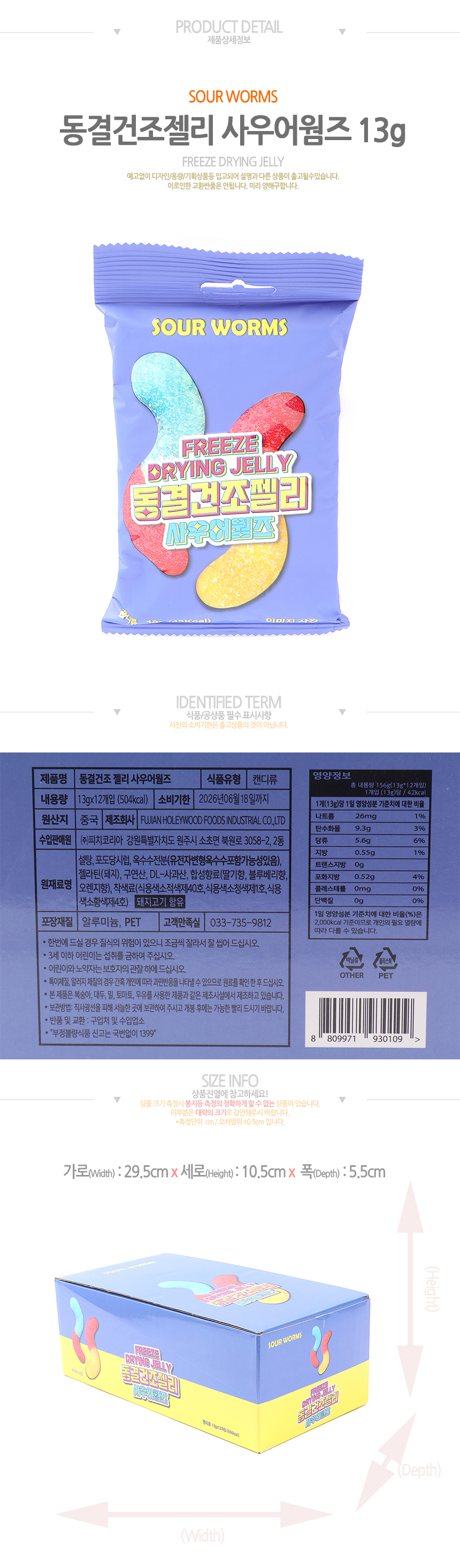특가)동결건조젤리 사우어웜즈(13g*12입)