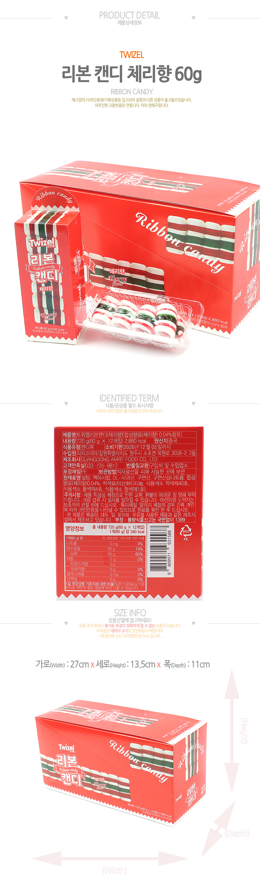 특가)트위젤 리본캔디 체리향(60g*12입)