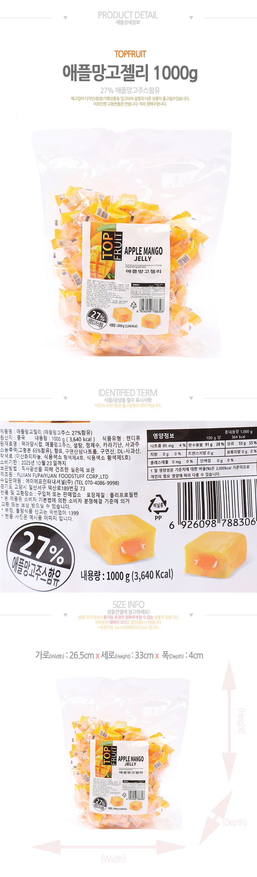 탑후르츠 애플망고젤리1000g(벌크)