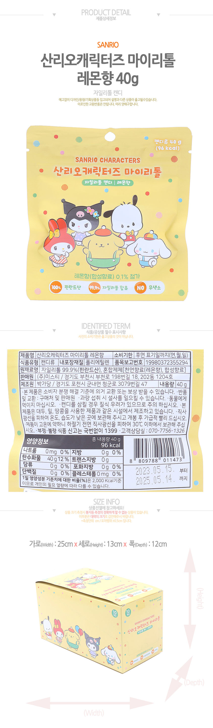 행사)산리오캐릭터즈 마이리톨 레몬향(40g*10입)