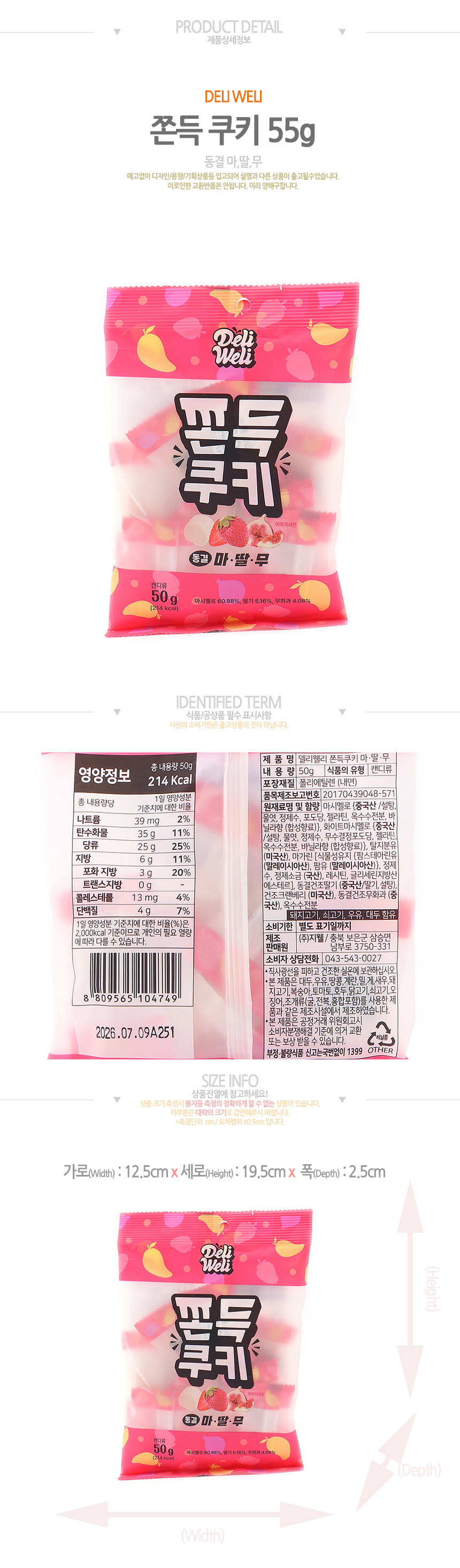 델리웰리 쫀득쿠키 마.딸.무 (50g*10입)