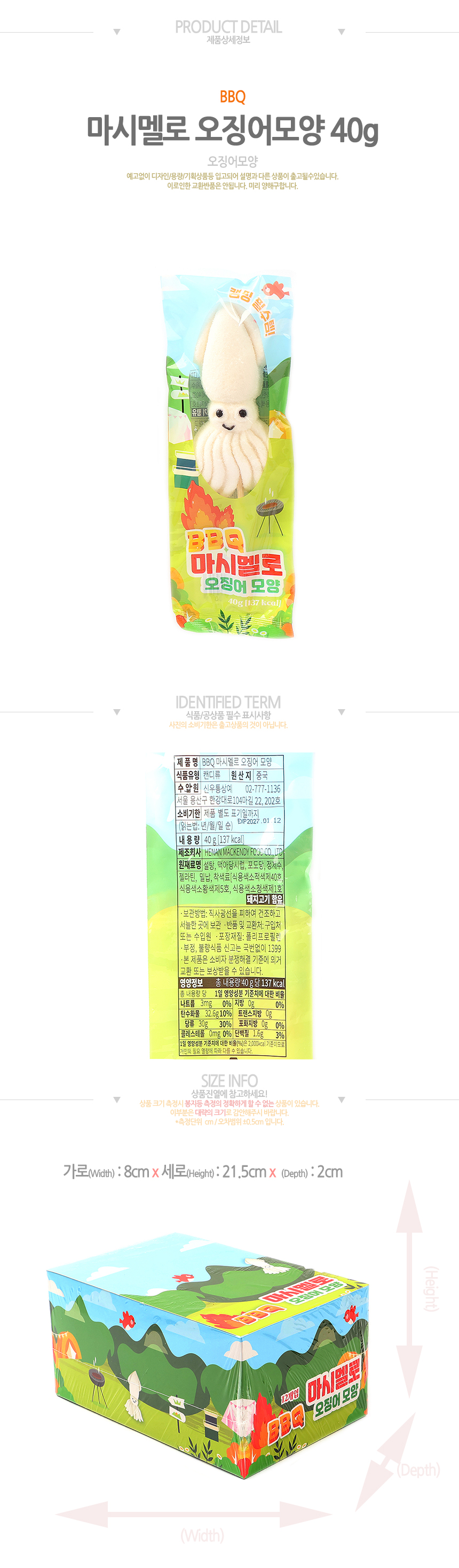 비비큐 마시멜로 오징어모양(40g*12입)