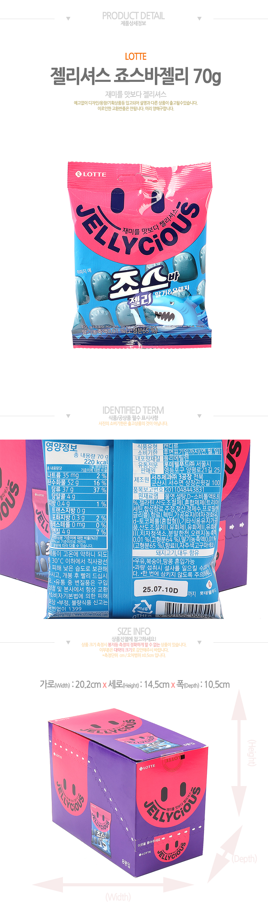 롯데 젤리셔스 죠스바 젤리(70g*8입)