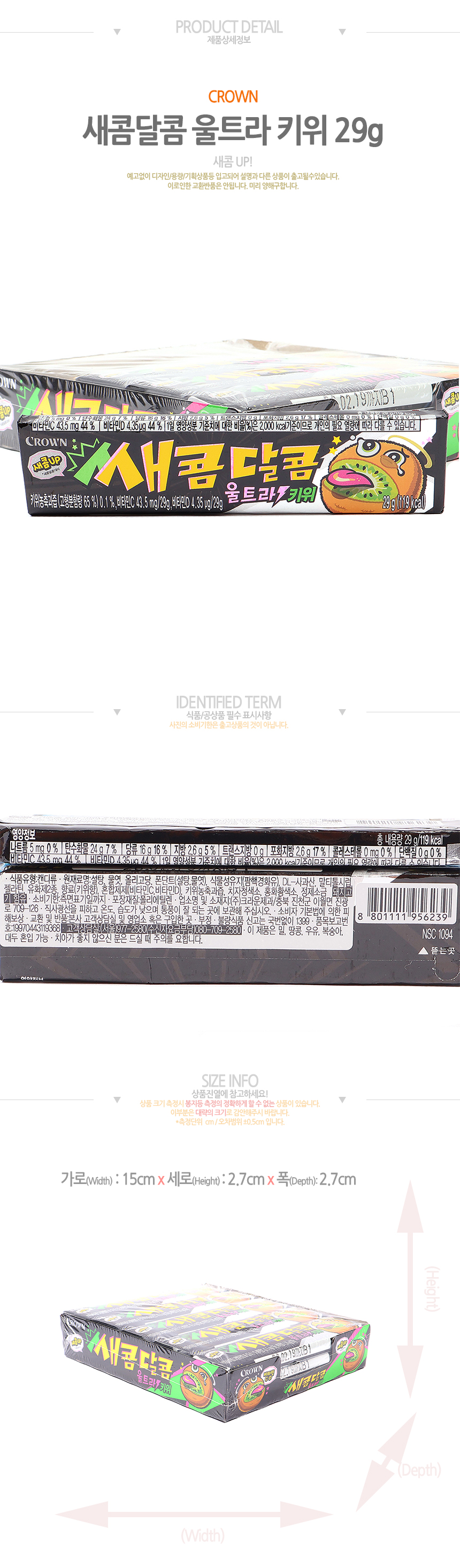 크라운 쌔콤달콤 울트라키위(29g*15입)