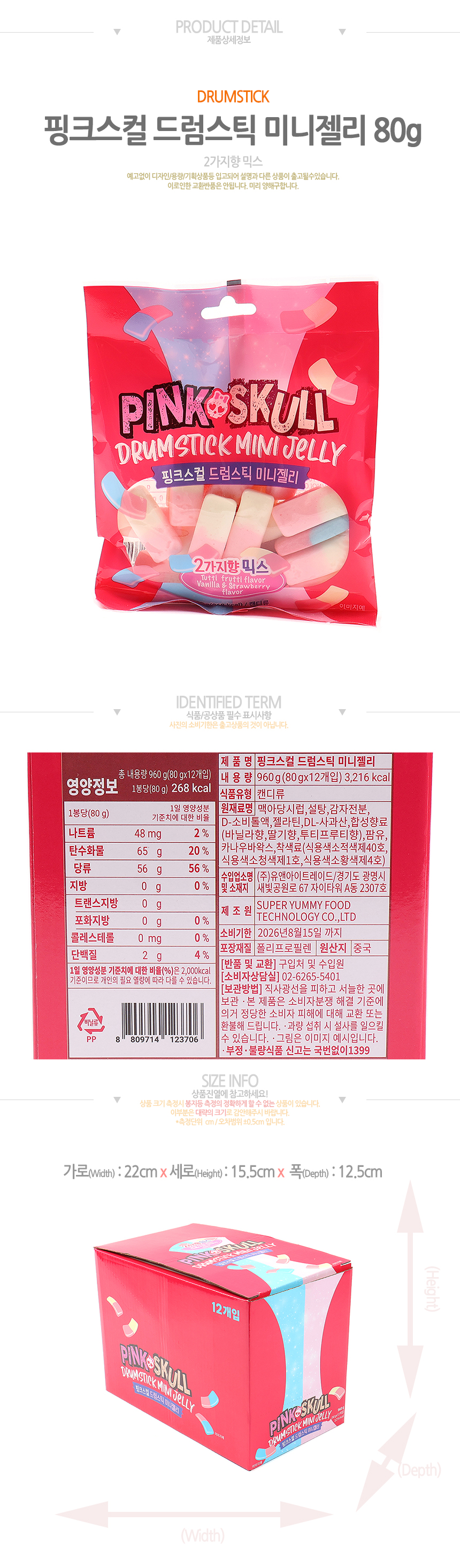 핑크스컬 드럼스틱 미니젤리(80g*12입)