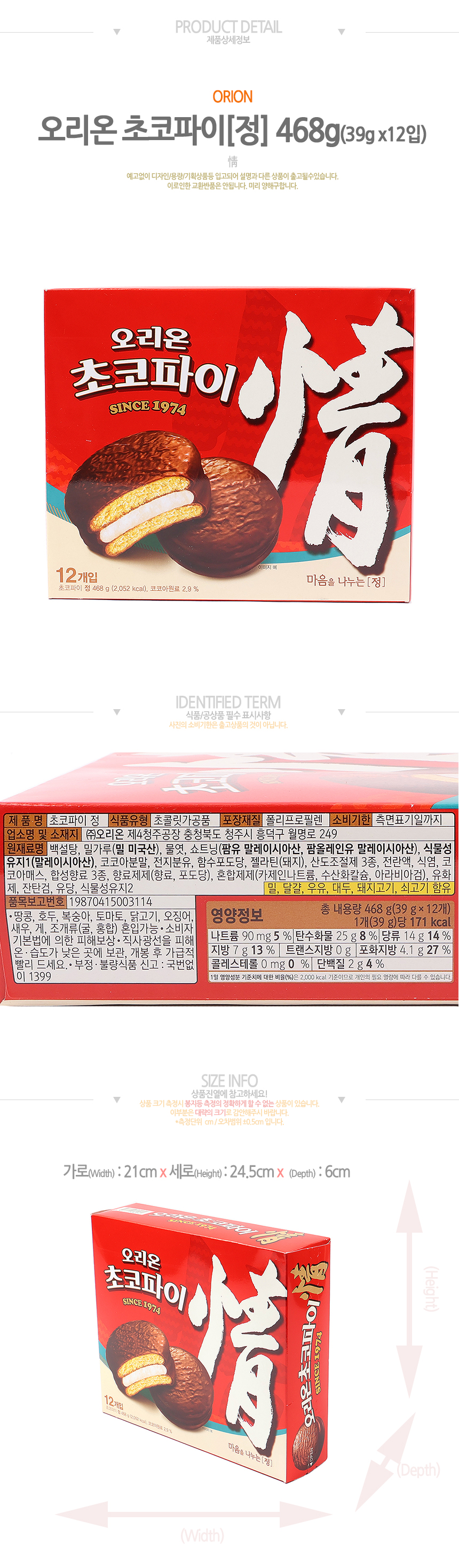 오리온 초코파이 468g (39g*12입)