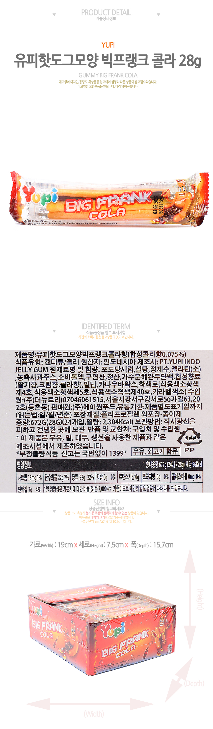 유피 핫도그모양 빅프랭크콜라향(28g*24입)