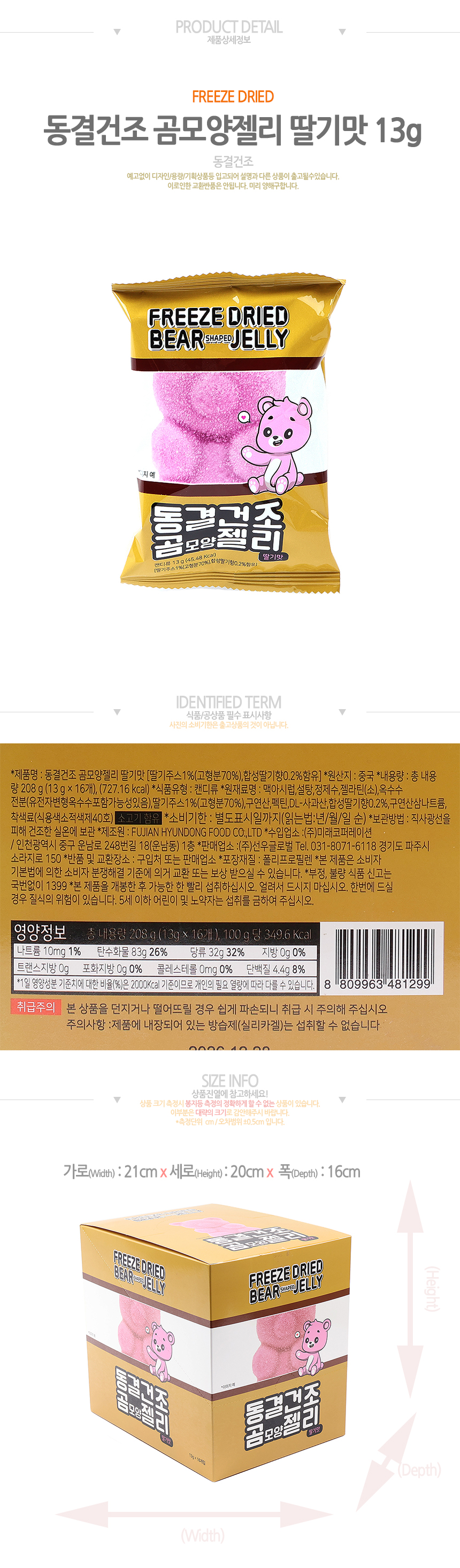 특가)동결건조 곰모양젤리 딸기맛 (13g*16입)