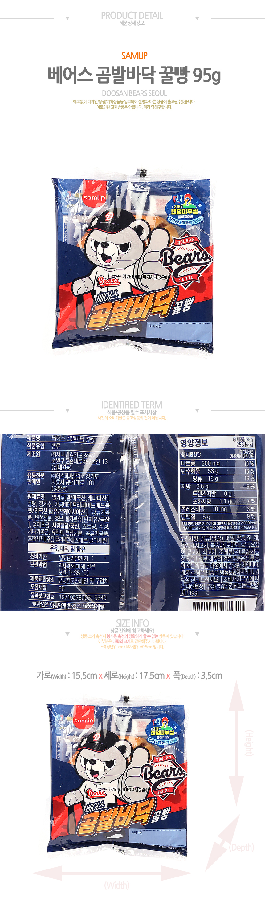 삼립 KBO 크보빵 베어스 곰발바닥 꿀빵 95g