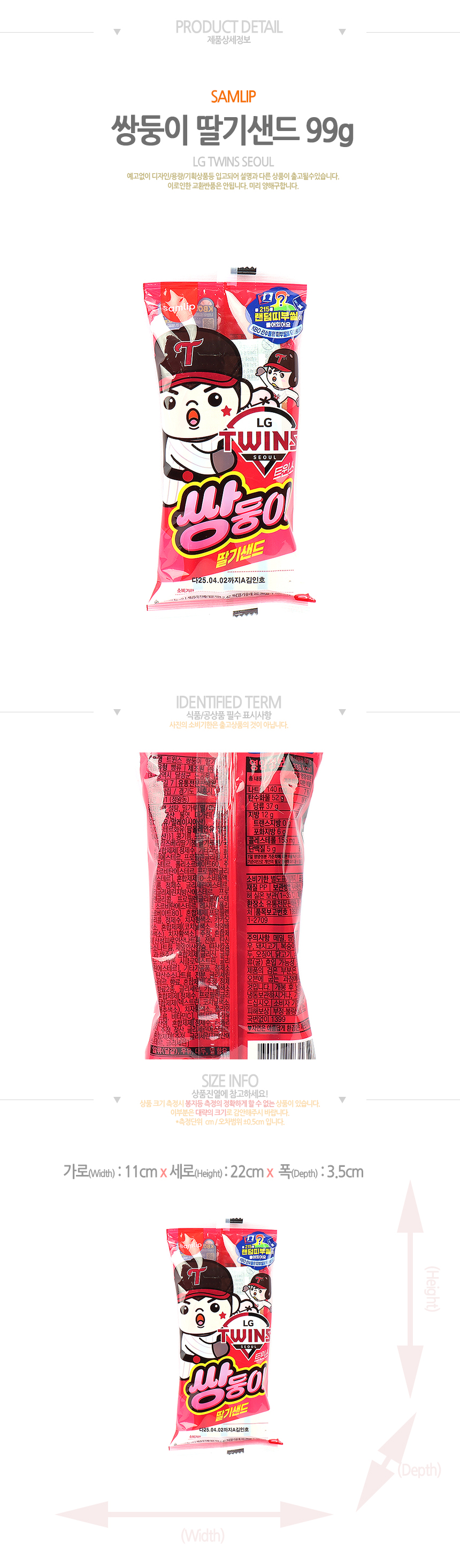 삽립 KBO 크보빵 트윈스 쌍둥이 딸기샌드99g