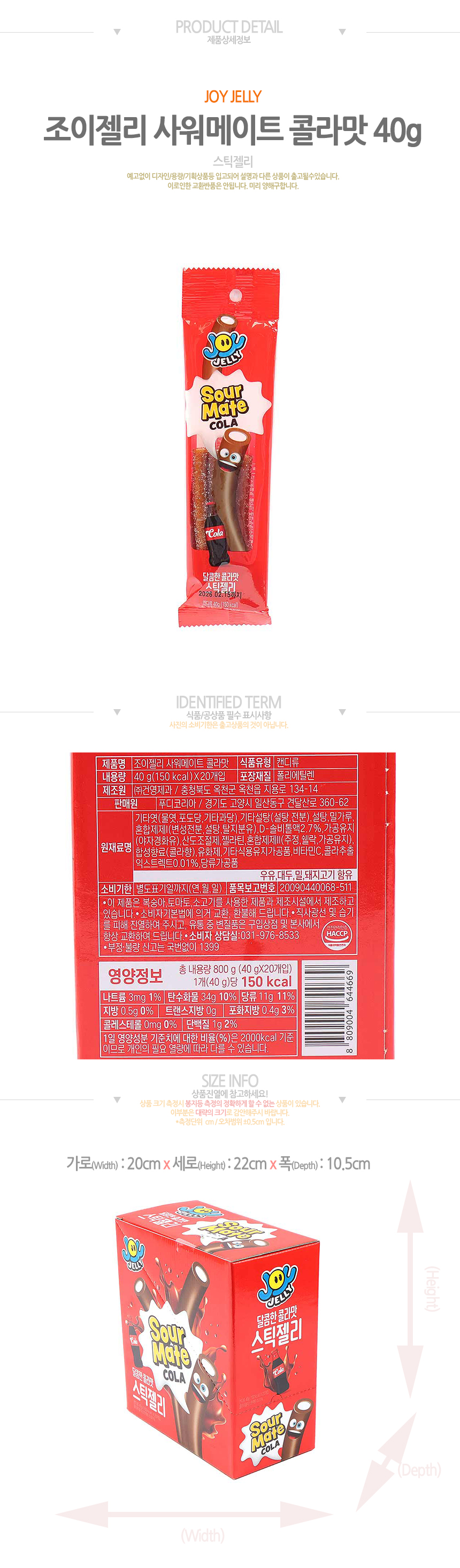 특가)조이젤리 사워메이트 스틱젤리 콜라맛(40g*20입)