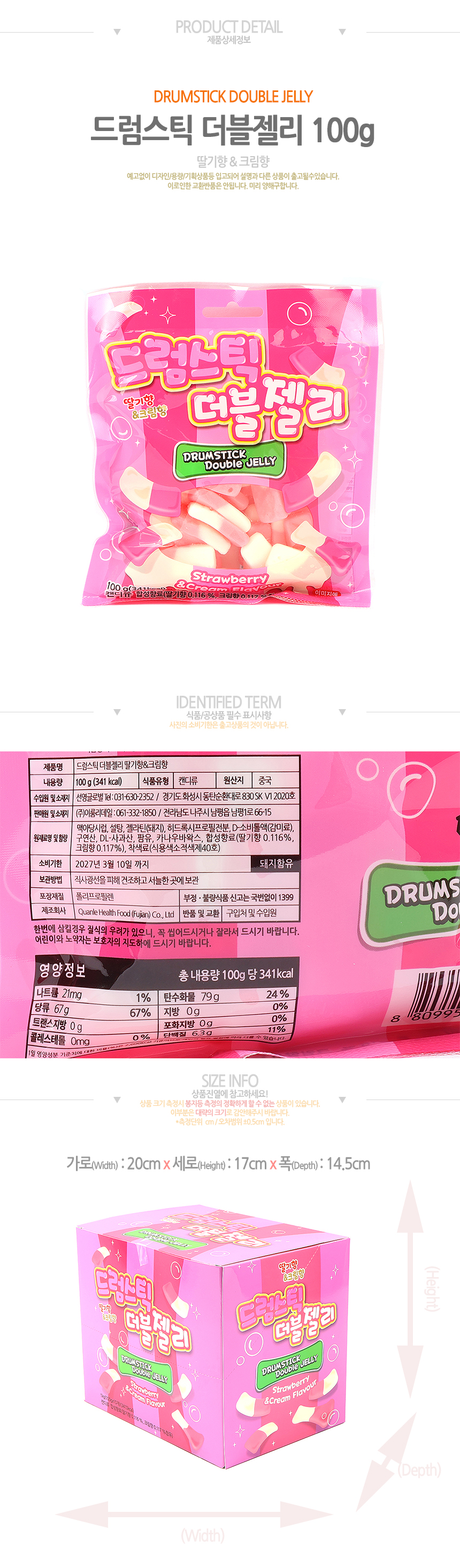 특가)드럼스틱 더블젤리 딸기향&크림향(100g*10입)