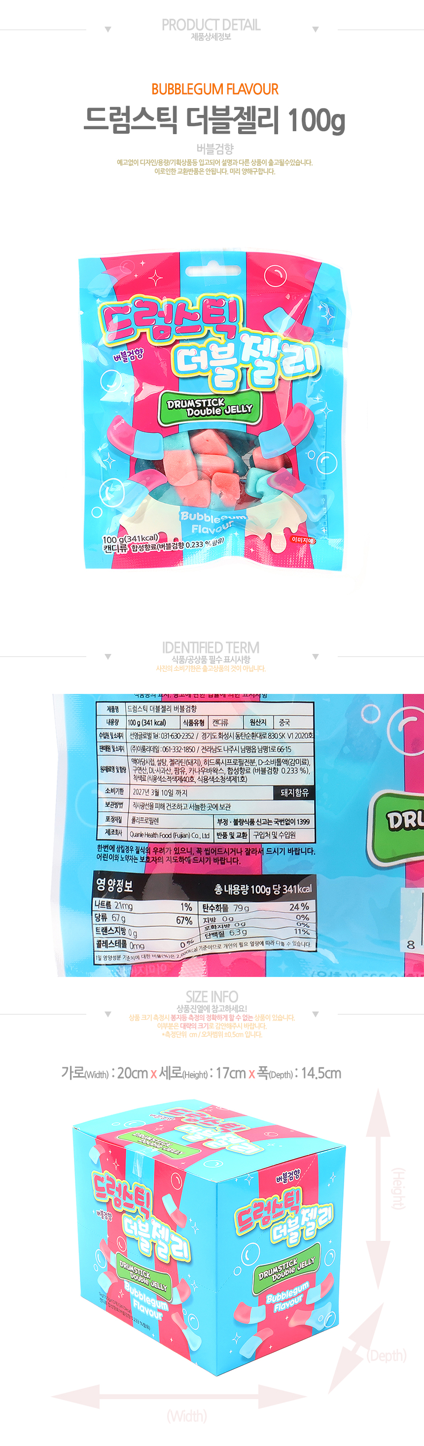 특가)드럼스틱 더블젤리 버블검향(100g*10입)