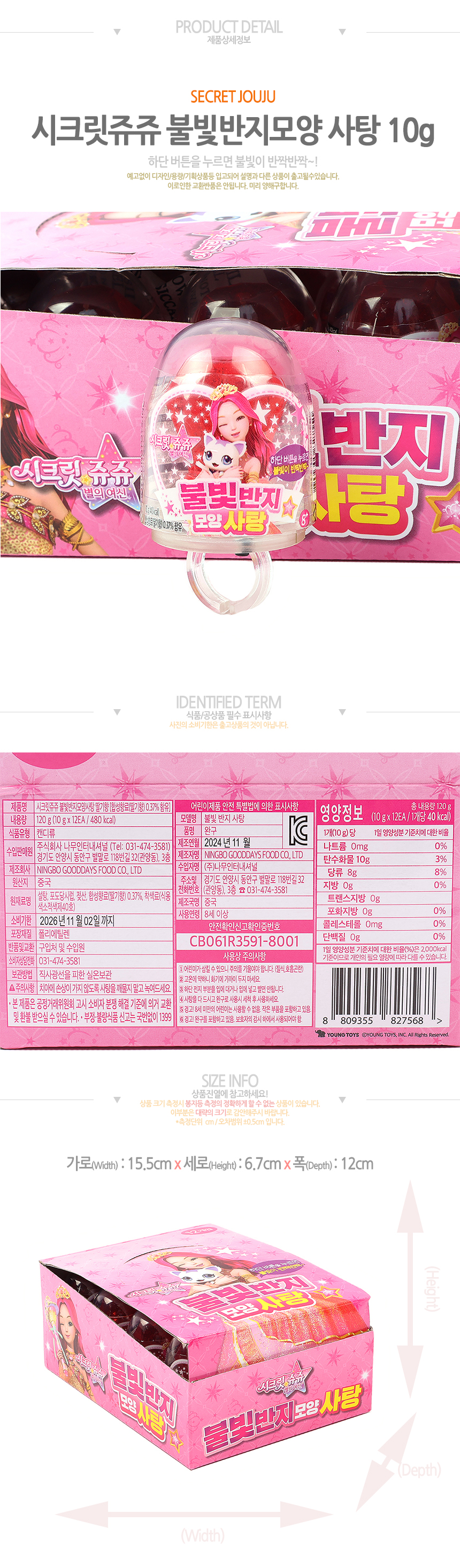 시크릿쥬쥬 불빛반지 사탕(10g*12입)