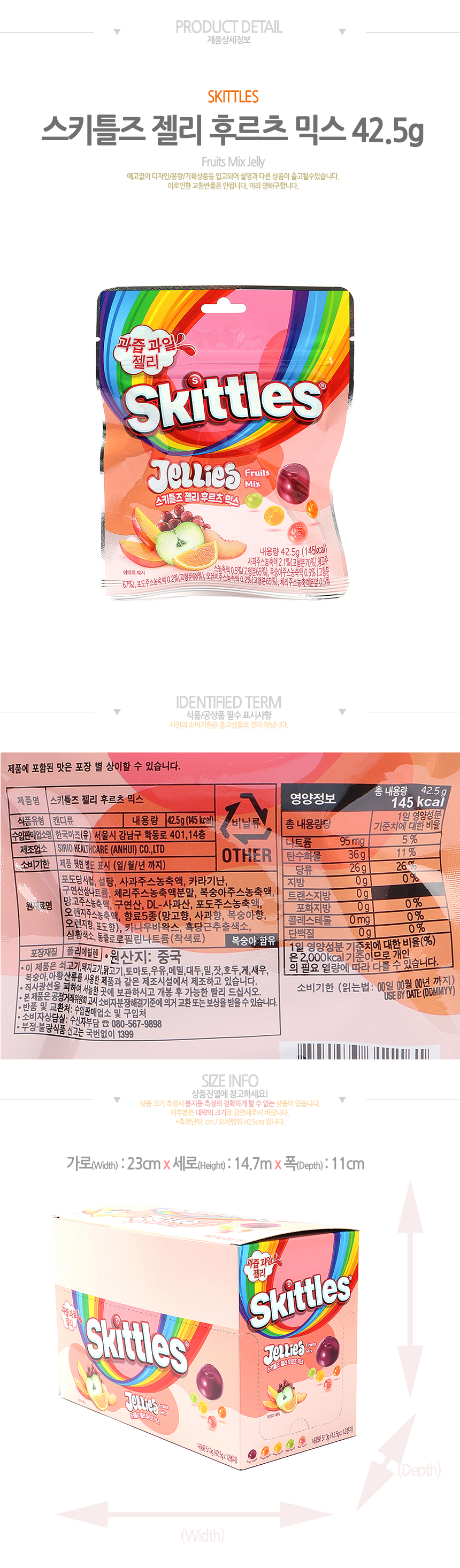 스키틀즈 젤리 후르츠 믹스(42.5g*12입)