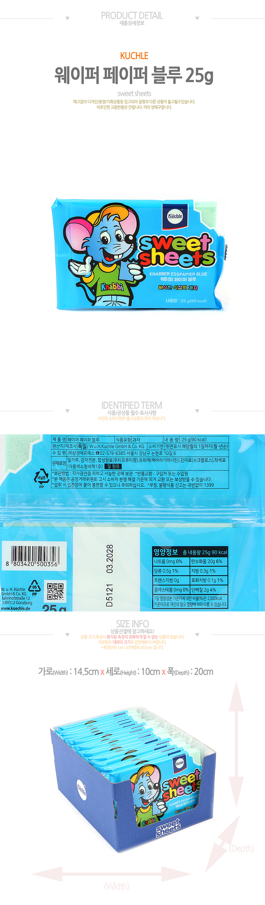 크나버 웨이퍼 페이퍼 블루(25g*16입)[색종이 과자]