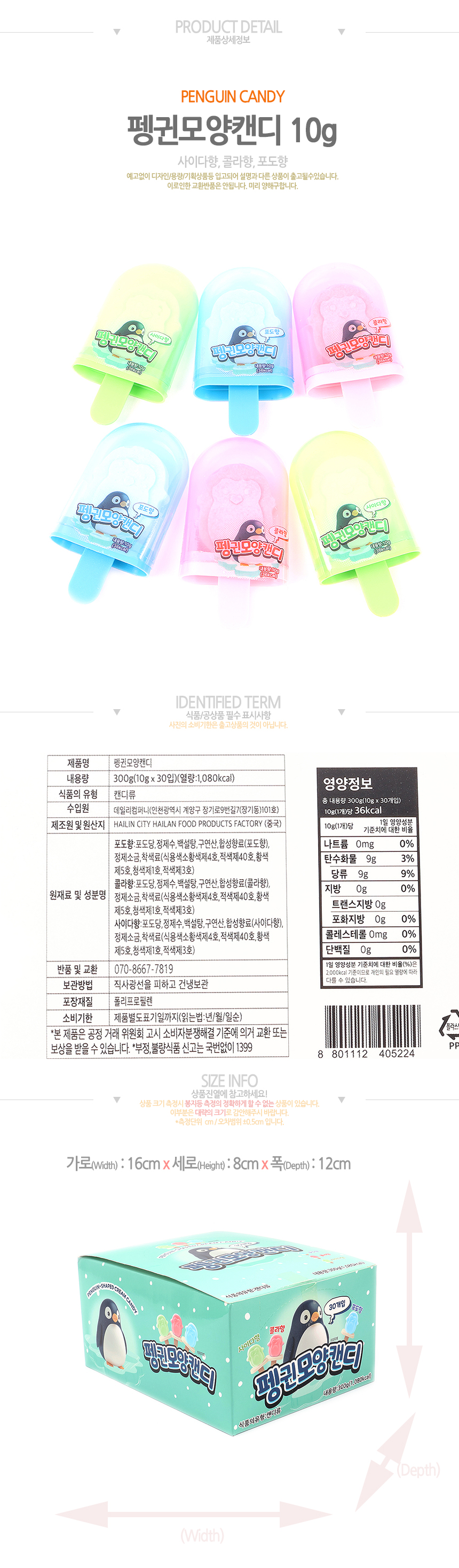 펭귄모양캔디 (10g*30입)[사이다향크림 유사상품]