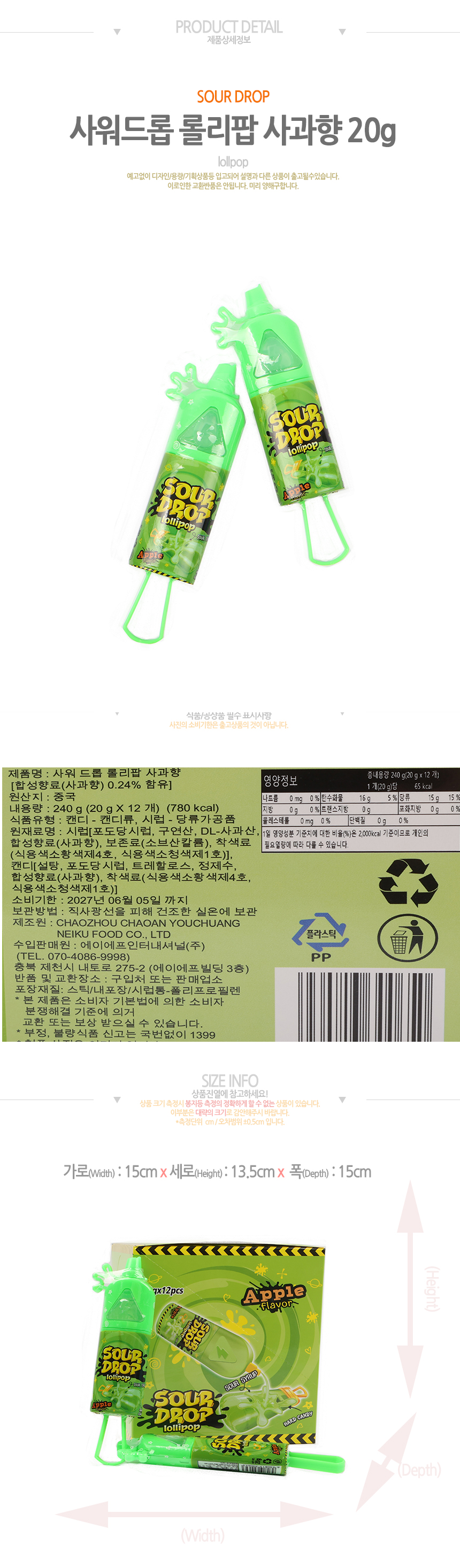 사워드롭 롤리팝 사과향 (20g*12입)