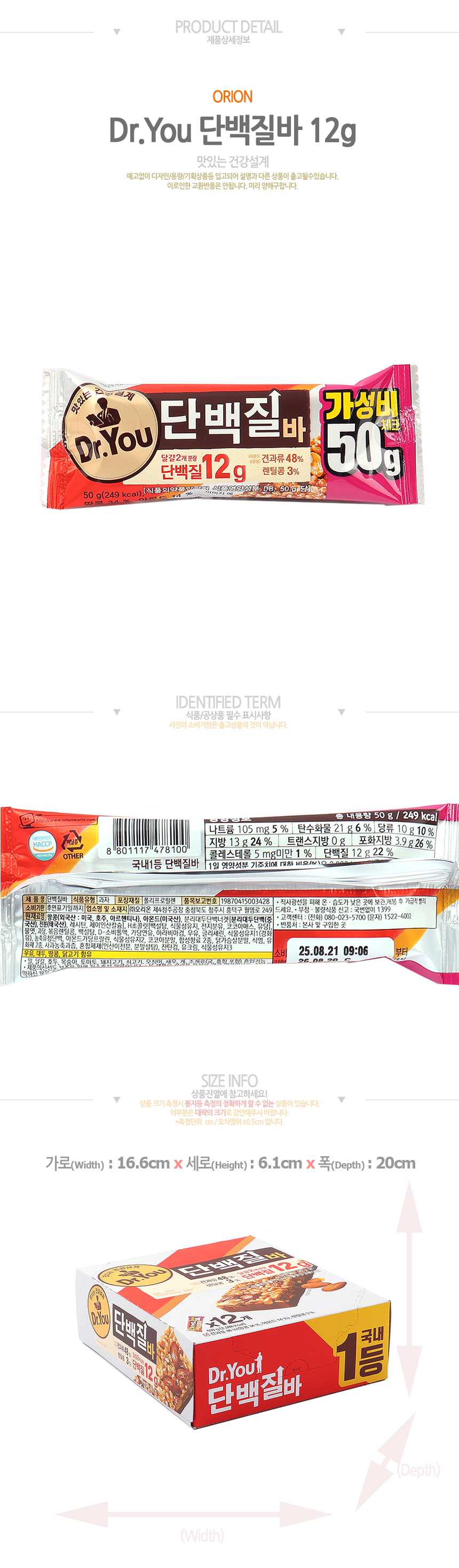 오리온 닥터유 단백질바 (50g*12입)