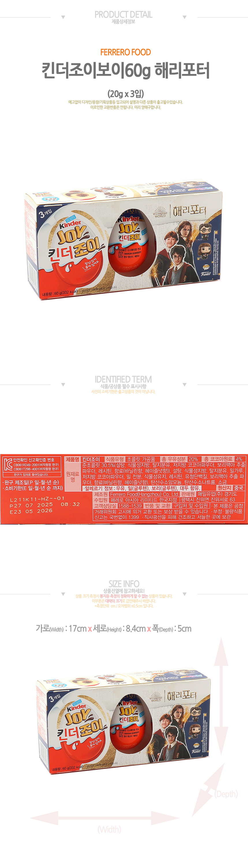 특가] 킨더조이보이60g 해리포터(20g*3입)