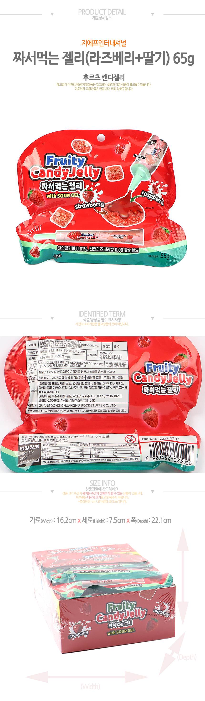 후르츠 캔디젤리 짜서먹는 젤리[라즈베리+딸기]65g