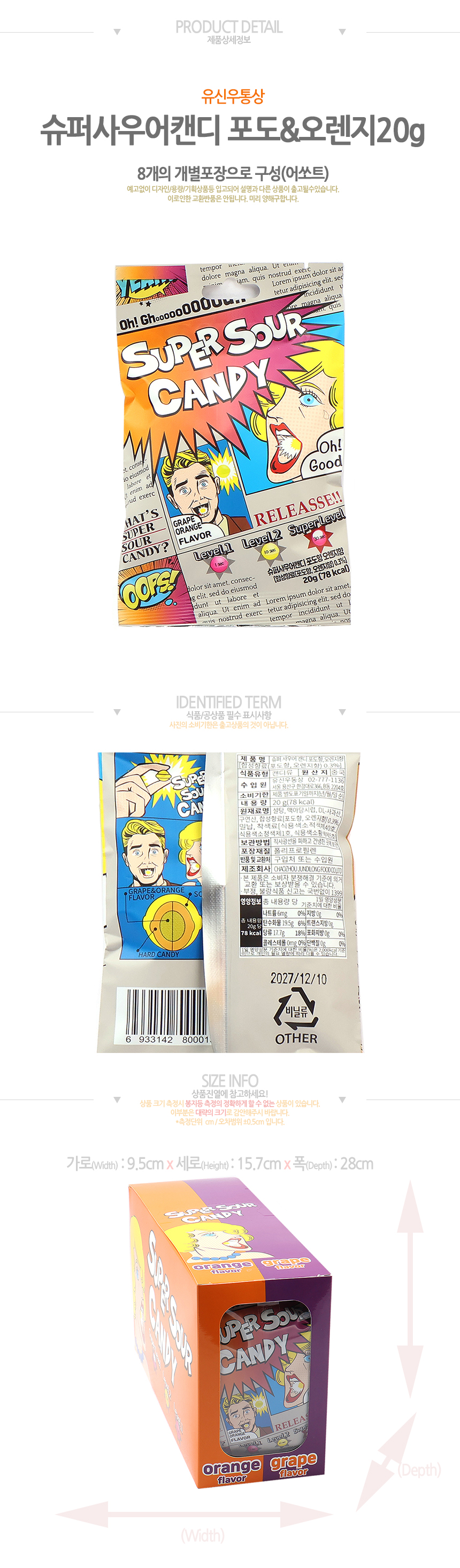 슈퍼사우어캔디 포도&오렌지향(20g*20입)
