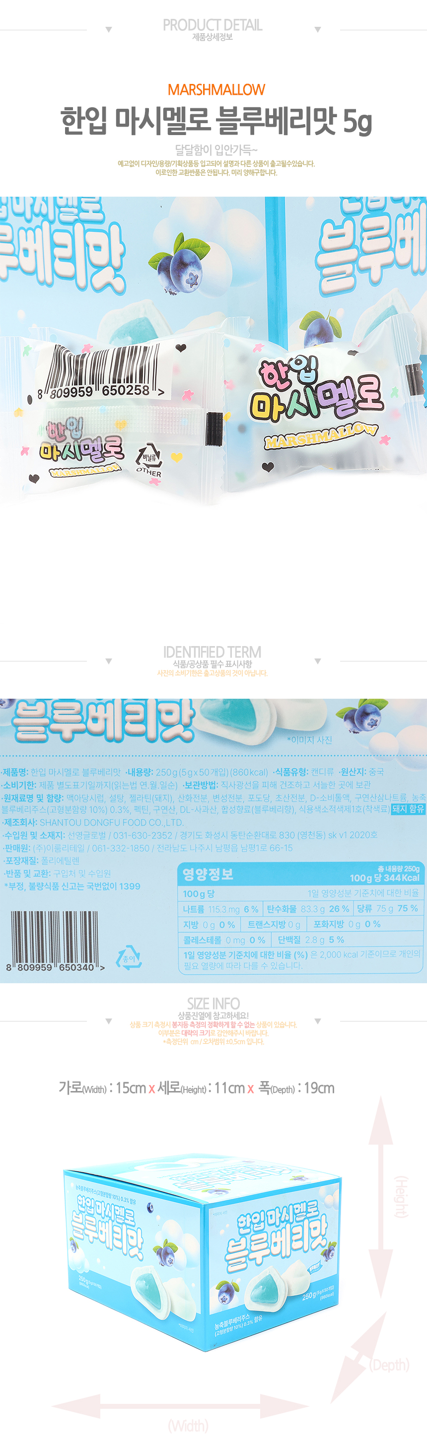 행사)한입 마시멜로 블루베리맛(5g*50입)250g