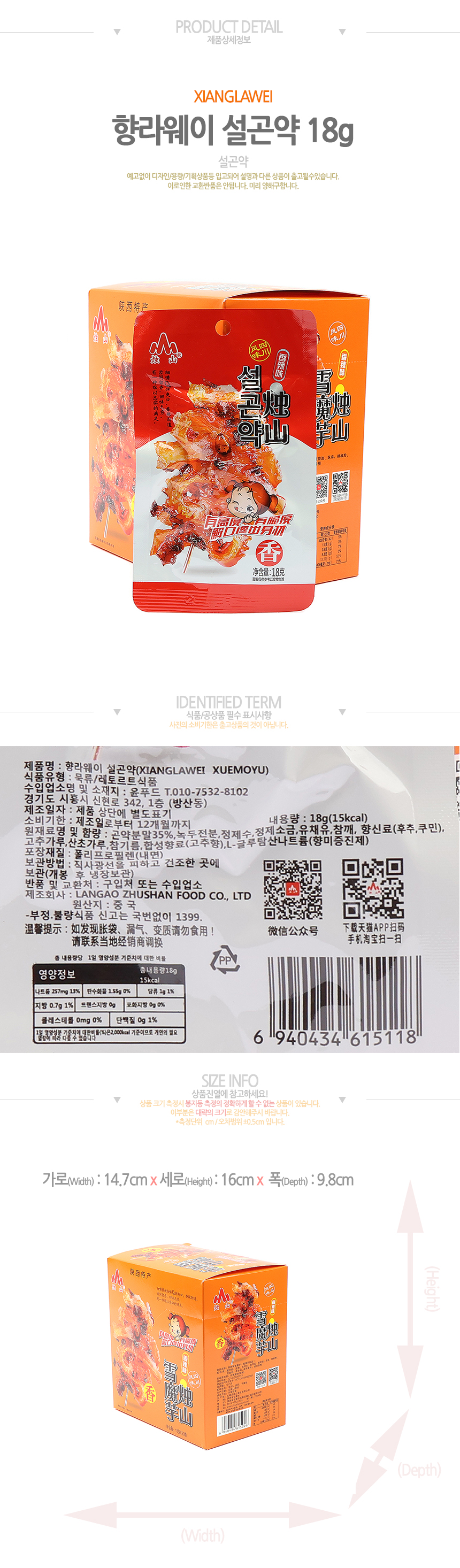 | ㆍ규격/단위 | (18g*20입)*20타 | ||||||