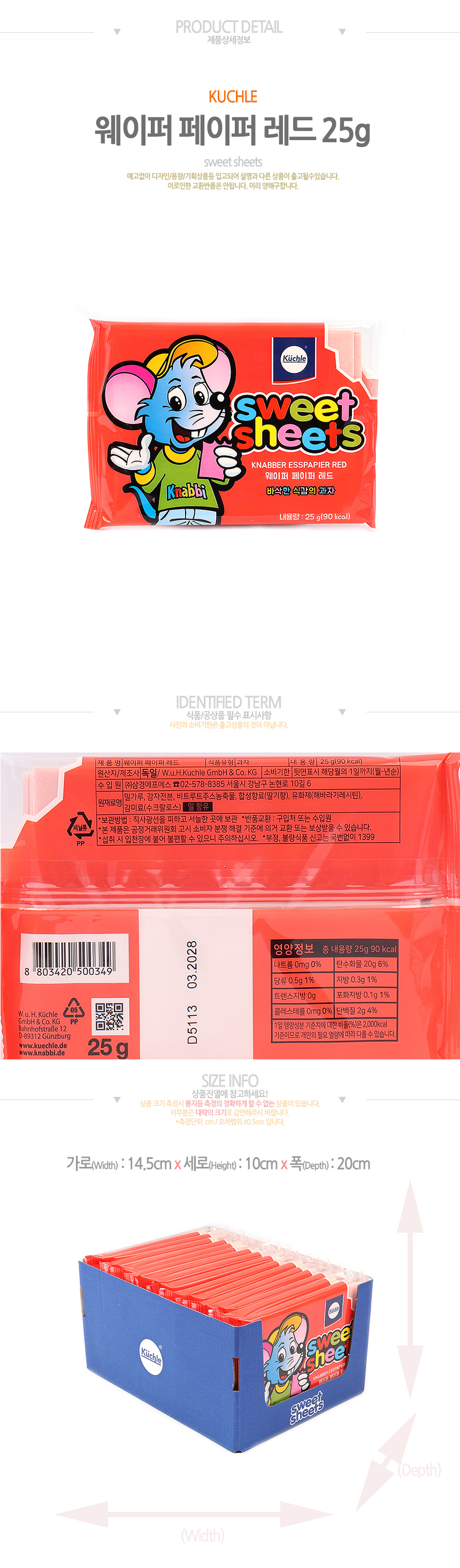 크나버 웨이퍼 페이퍼 레드(25g*16입)[색종이 과자]