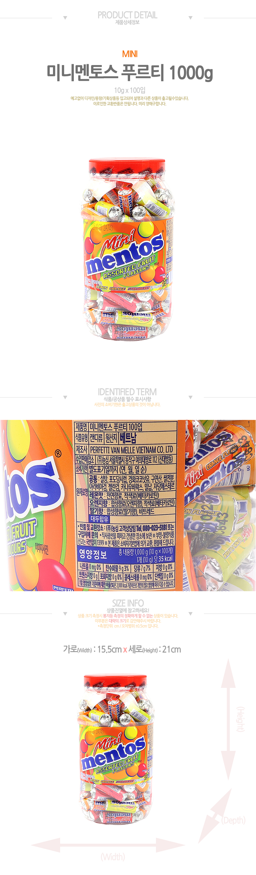 미니멘토스 푸르티향 (통)1kg(10g*100입)
