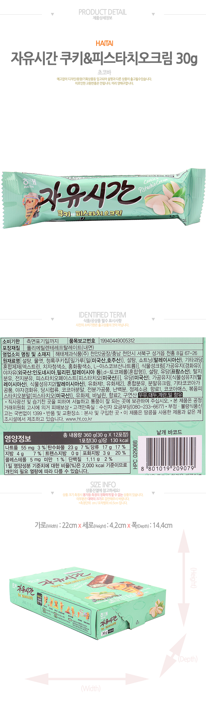 해태 자유시간 쿠키앤피스타치오(30g*12입)