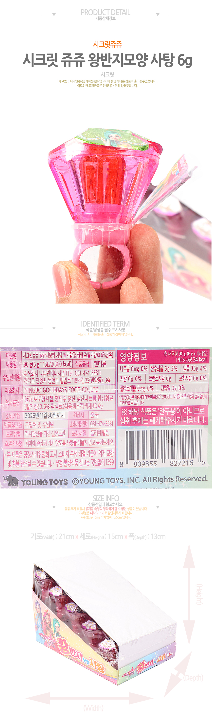 시크릿쥬쥬 왕반지 모양사탕(6g*15입)