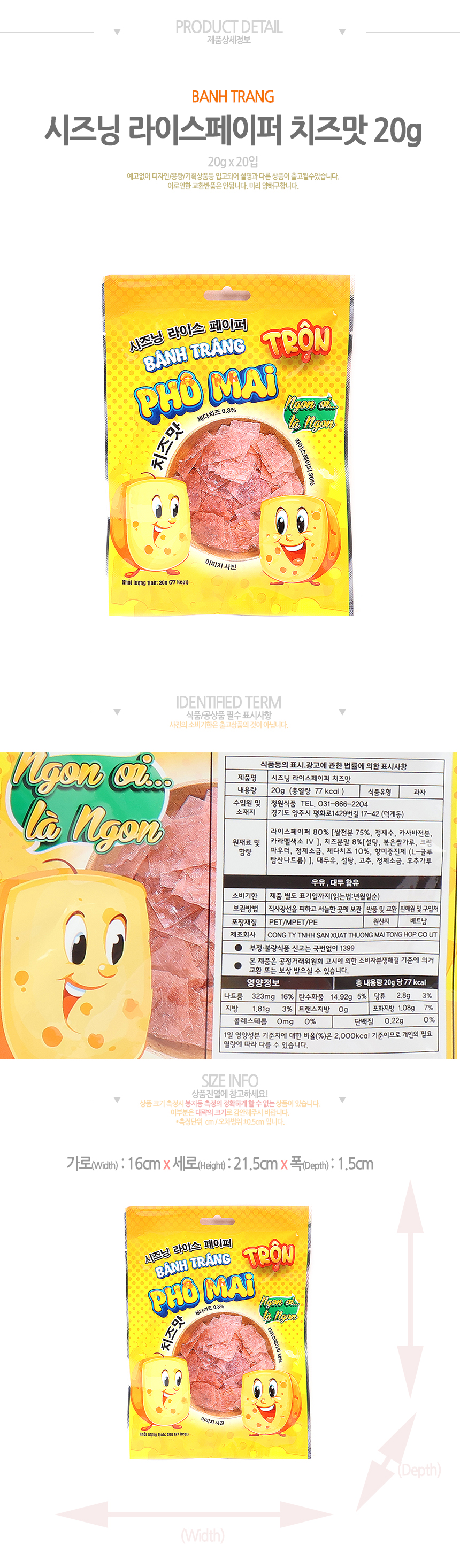 시즈닝 라이스페이퍼 치즈맛(20g*20입)