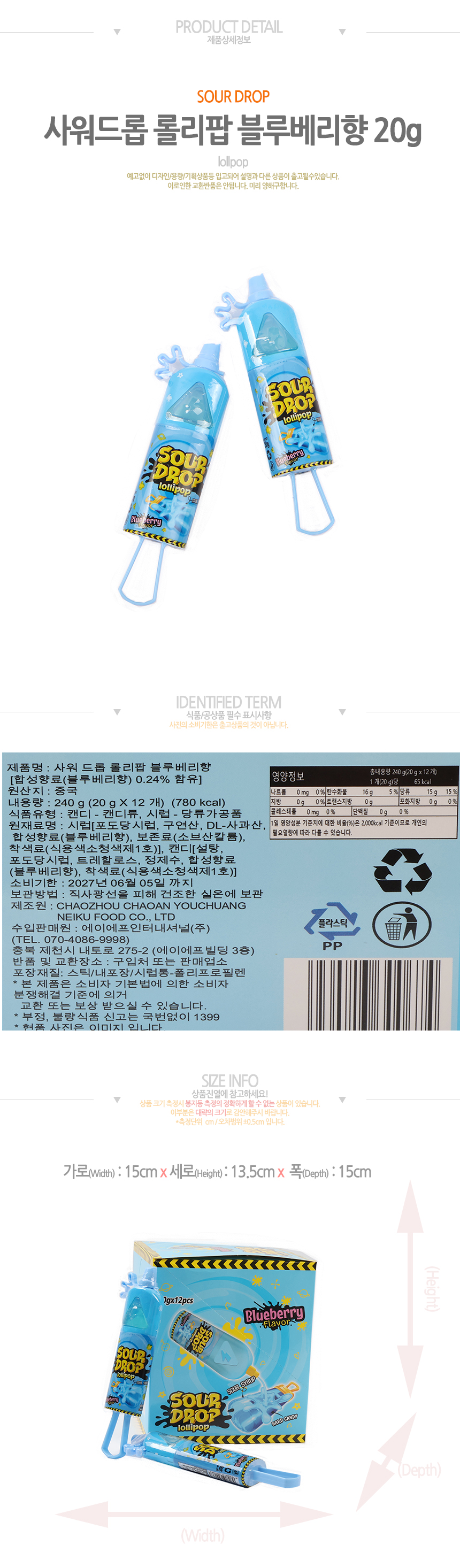 사워드롭 롤리팝 블루베리향 (20g*12입)